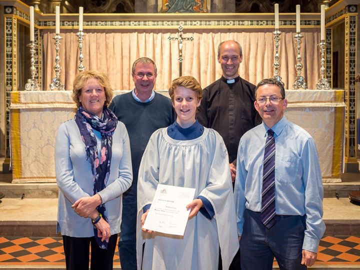 Matthew being inducted as the fourth ‘young gentleman’ of the Choir at Choral Evensong on Sunday 29th September. He is now singing as a tenor on the back row of the Choir. Martin Seymour (Romsey Abbey Musical Director) ‘Thank you again to George’s Trust for part funding this post’.